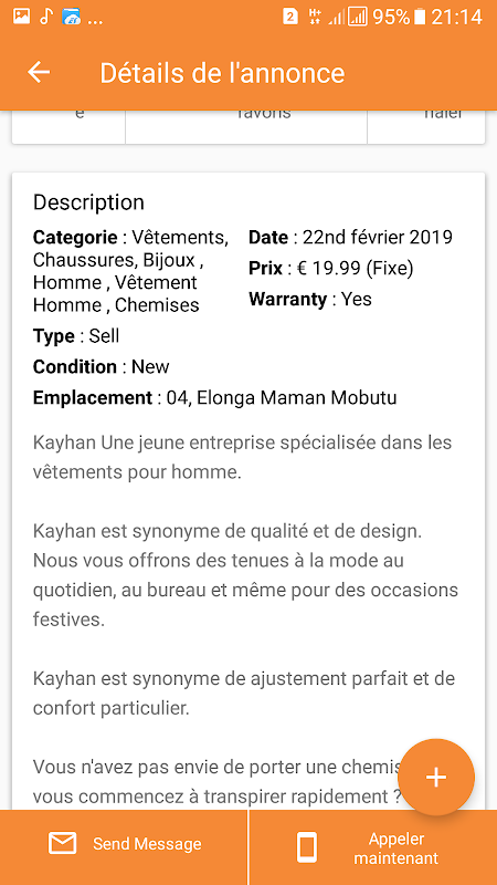 - De contacter le vendeur par appel téléphonique ou par Tchat;