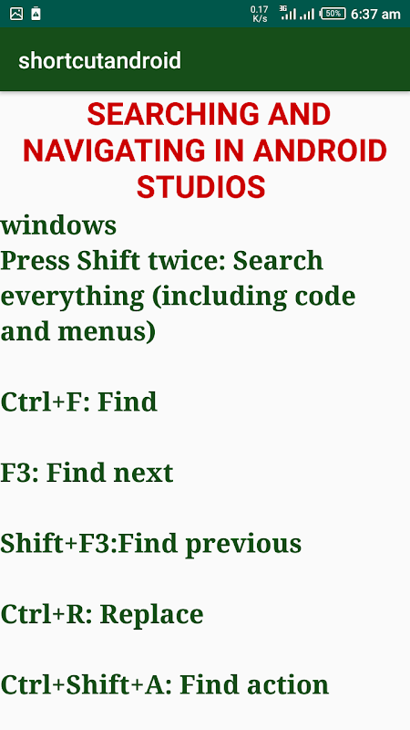 Android-app met sneltoetsen is een handige app die Android-studio's snel leert.
