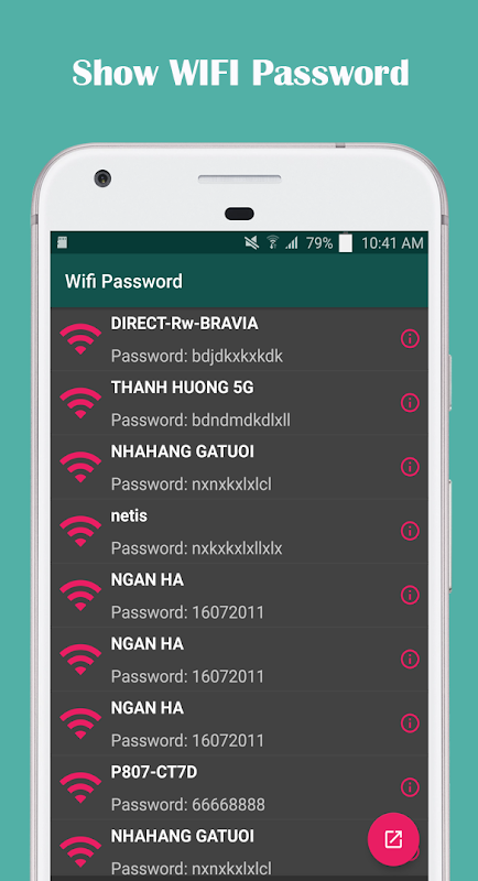 Toon wifi-wachtwoord - Netwerkscanner is een applicatie voor het beheren en back-uppen van al uw verbonden wifi-wachtwoorden op uw telefoon. Met wifi-wachtwoord tonen kunt u het gedeelde wifi-wachtwoord kopiëren dat is opgeslagen bij uw vrienden.