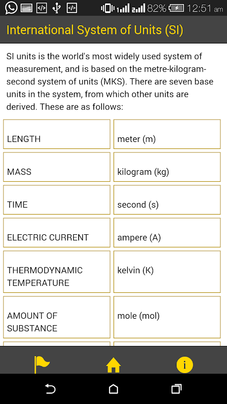This app also listed all seven Internation System of units (SI).