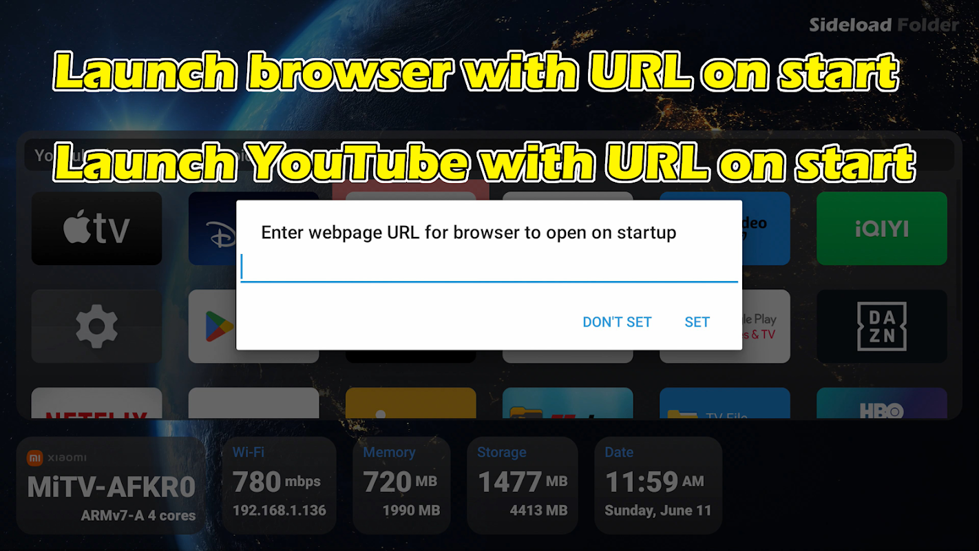 7. Start YouTube TV automatisch met een specifieke video-URL bij het openen van de sideload-map.