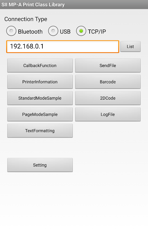 Deze app stelt u in staat om tekst of barcode afdrukken naar Seiko Instruments Inc. (SII) mobiele printer MP-A-serie met MP-A Print Class Library door SII.