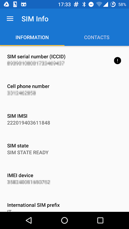 • SIM serial number (ICCID). Warning: if more than 19 figures were given, know that the problem is not on the application, but the Android API.
