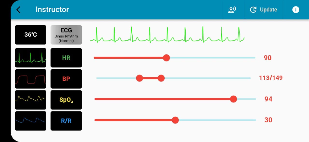 De instructeur kan mogelijk de vitale functies van de patiënt verbeteren als de student de juiste behandeling voor de gesimuleerde patiënt start. De patiënt kan verslechteren en uiteindelijk een hartstilstand krijgen als dit niet wordt gedaan.