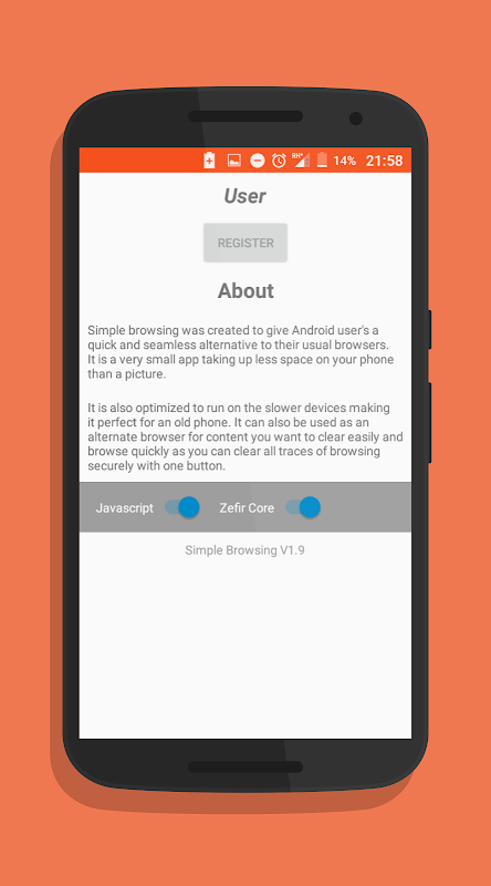 Simple browsing is a super small fast and efficient browser. Striped off all features that a typical browser would use apart from the core usability. The app is less than 1MB in size and loads pages OTG (On The Go) meaning your pages are loaded as you type in the URL.