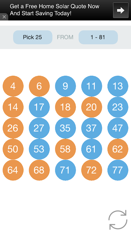 All I wanted was a simple app to choose random numbers for playing the local keno game. All I found were apps that cost money one was or the other. Other apps focused on time-consuming animations and all I wanted were numbers!