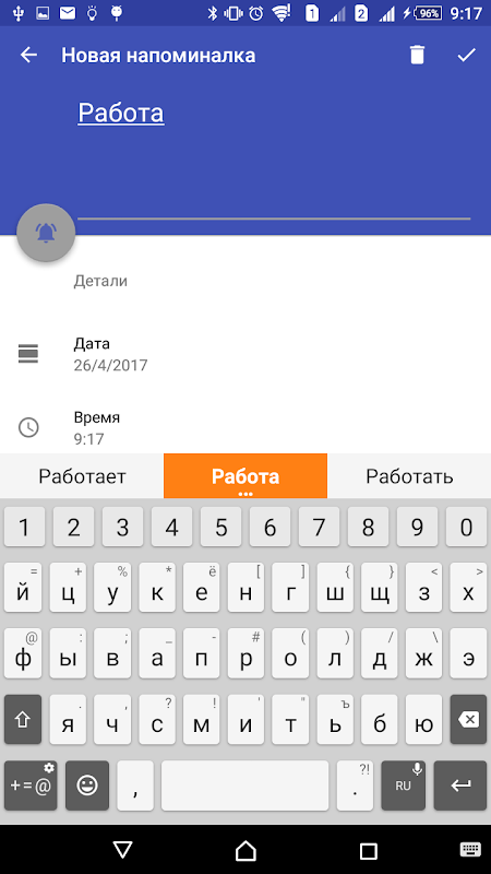 - creating single reminders will not forget about upcoming meetings or trips;