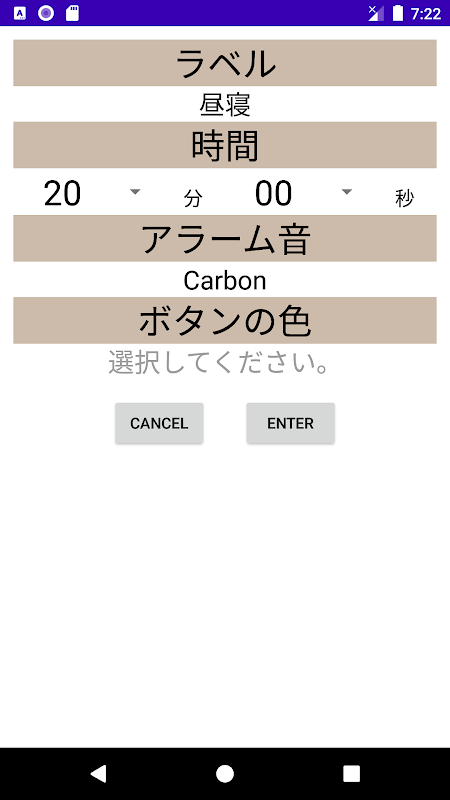 ※端末スリープ時の動作はサポートしていません。(タイマーを使用中は端末がスリープしないようにしていますが、手動で端末をスリープにした場合タイマーもストップします。)