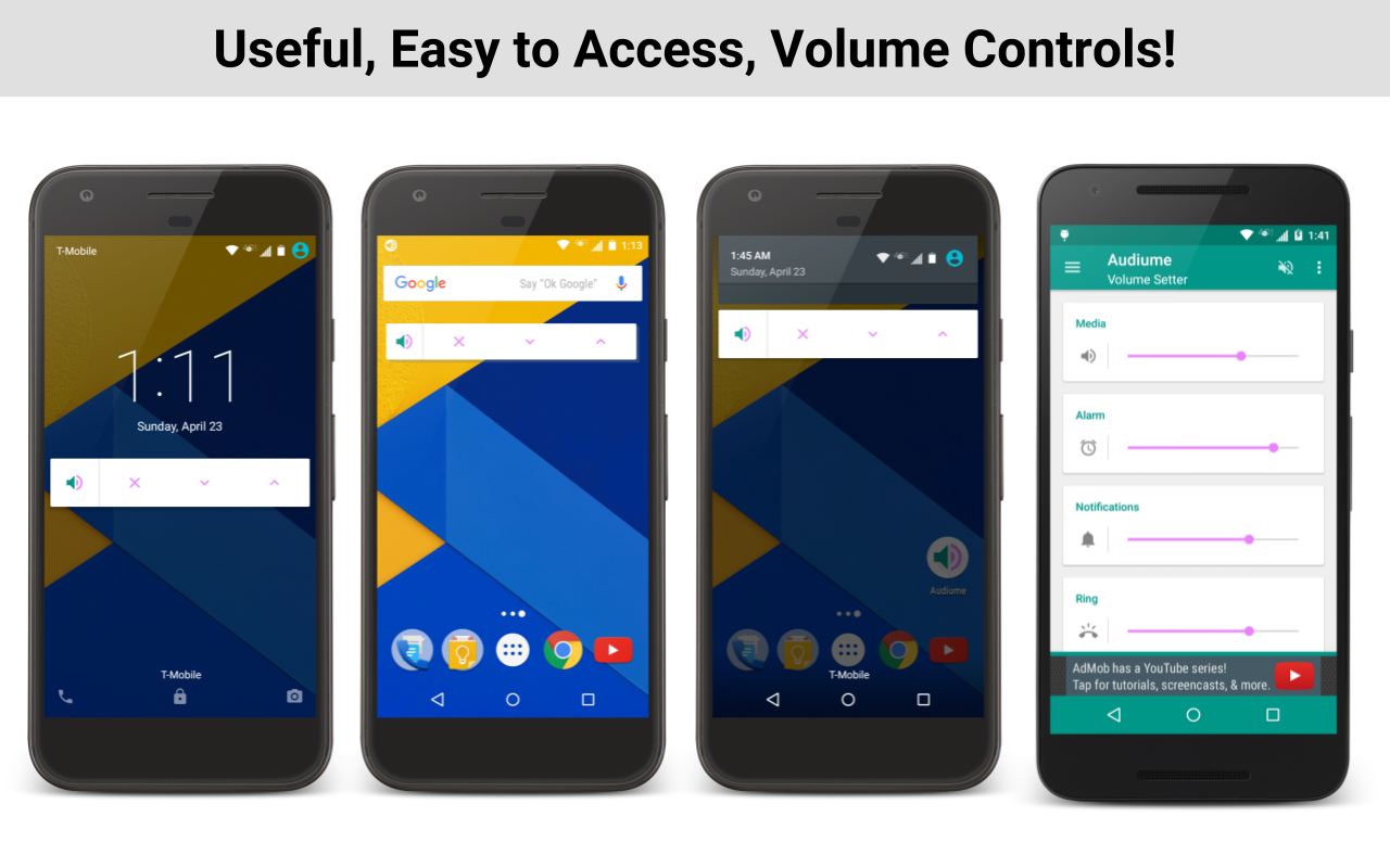 U kunt de Media, Alarm, Notification, Ring, Call Voice en audio streams te bedienen vanaf zowel binnen de app of via widget.