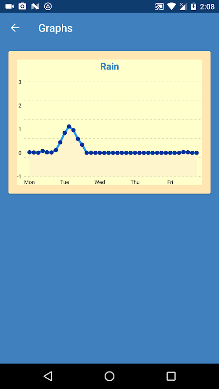 - Nice colored temperature and rain graphs.
