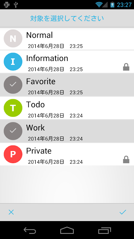 メモ帳の作成、編集などの基本機能に加えて5つのタグからメモをカテゴライズ可能です。カテゴライズされたメモはリストから簡単に検索が可能です。