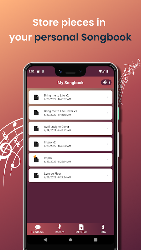 Deze app detecteert niet 100% van de gespeelde noten en er zullen ook verkeerde detecties zijn. Maar afhankelijk van de kwaliteit van het ingangssignaal, zal het u nuttige suggesties geven!