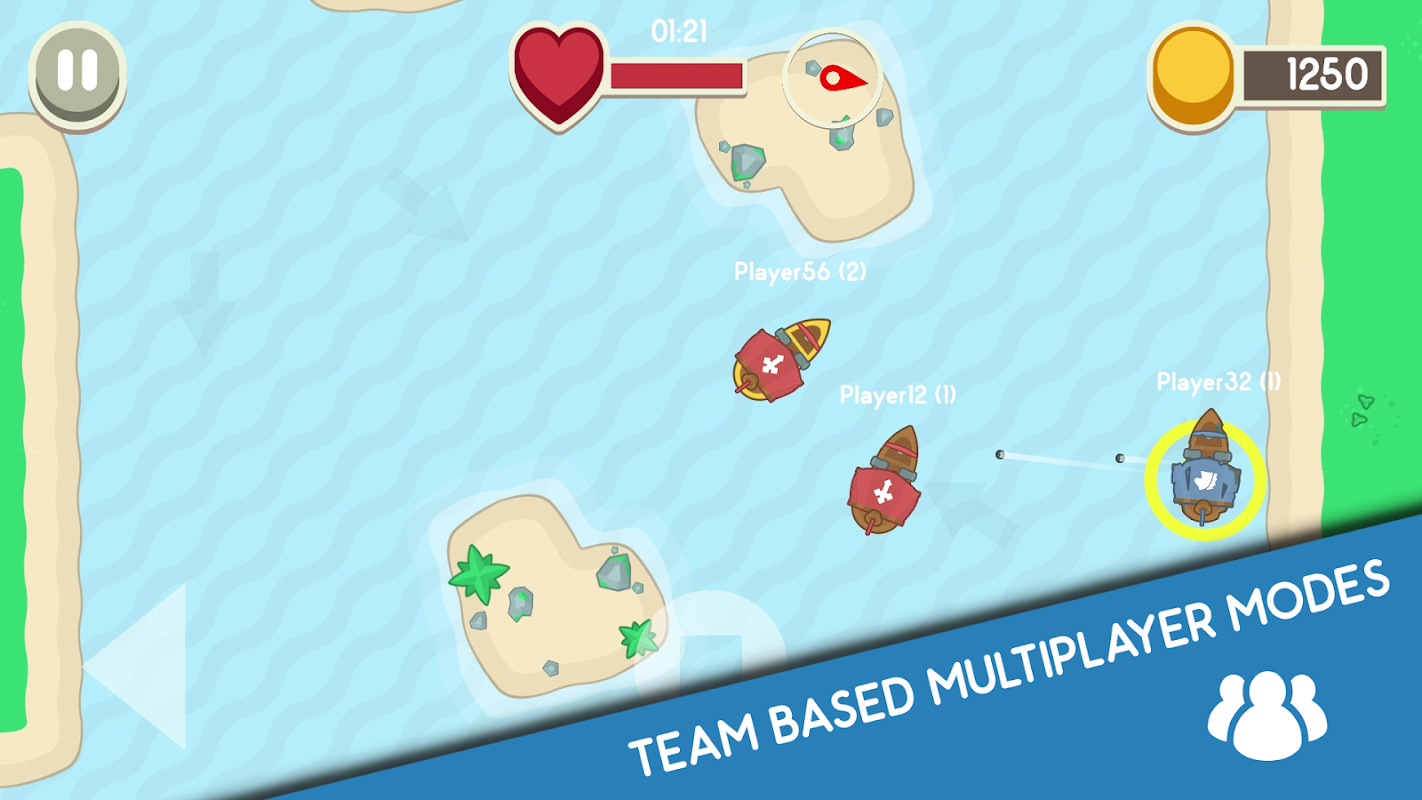Download the free 2D multiplayer game now and play with your friends online or play alone and fight against pirate ships!