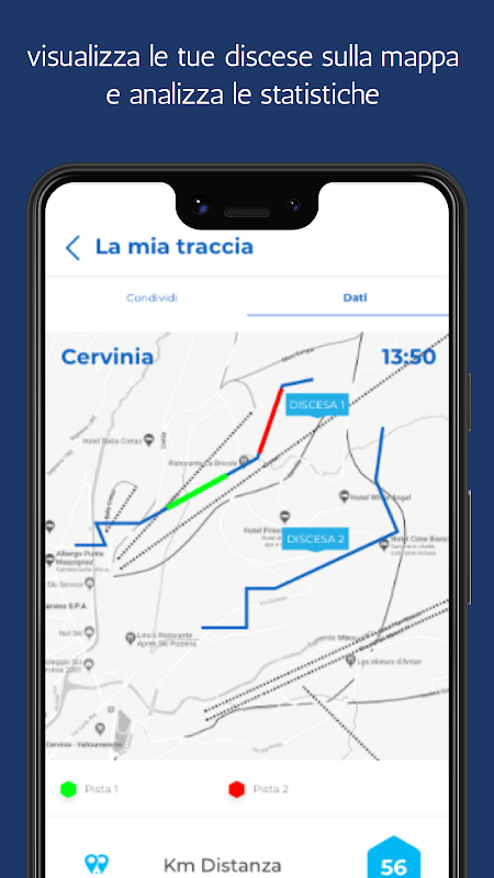 Ga naar uw persoonlijke profiel en activeer het volgen van uw prestaties op ski's of snowboard. Met het geavanceerde GPS Ski Tracking-systeem zie je aan het einde van de dag hoeveel kilometers je hebt afgelegd, het aantal runs, de gemiddelde snelheid en de aangeraakte topsnelheid, de verbrande calorieën en de opgebouwde hoogteverschillen op de hellingen. U kunt tijdens het winterseizoen op elk moment uw vorderingen en activiteiten zien. Aan het einde van de dag op de hellingen kun je je tracks zien via de interactieve 3D-kaart.