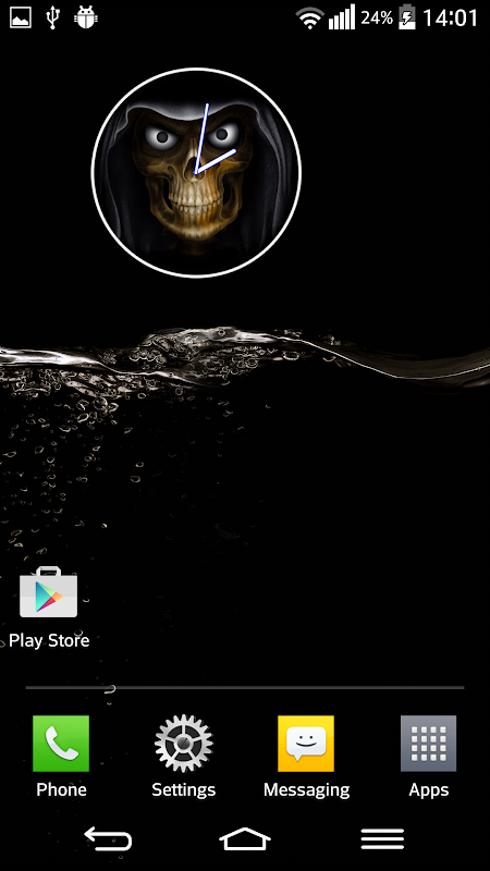 Leg deze mysterieuze en onheilspellende symbolen van dood en sterfelijkheid op uw telefoon of tablet in de vorm van een machtige en spookachtige "Schedel Klok Widget". Schedel Klok Widget kunt u uw favoriete "skull face" vinden - een schedel op brand met verzengende rode ogen, een lachende schedel, of een zwarte schedel van de "Grim Reaper" kan worden omgezet in een koele schedel analoge klok evenals één van de beste "widgets voor Android ™" met een "wekker voor gratis". Begin uw reis op een "Highway to Hell" met een paar heldere rode ogen laaiend in het donker, dat zeker zal geven je de koude rillingen. Heeft geen tijd meer verspillen, angst-inducerende "Skull Clock Widget" is de fancy widget van je dromen als je een fan bent van enge "spookverhalen" en horror films! Als u downloaden van de sombere "Skull Clock" widget, krijg je om wakker te worden van de wekker plus staren naar de enge "schedel en beenderen" uit onze galerij, geheel gratis!