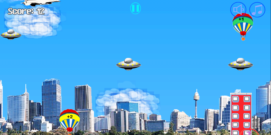 Controle van de jet om de ballonnen pop en ontwijk de vliegende schotels.