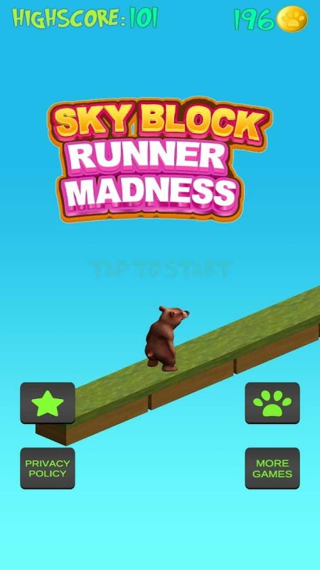 Welcome to Skyblock Runner Madness! Help Thomas the lazy bear escape unforgiving skies and help him get his friends back.