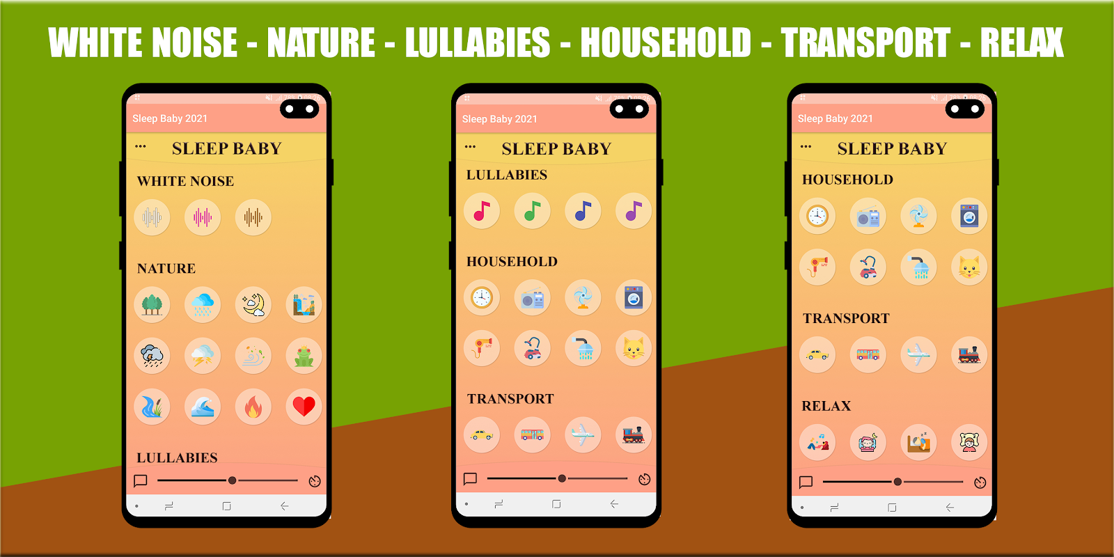 Baby Sleep is easy to use so that even your babies can start the lullaby. They just choose one of the available sounds. Each lullaby has a color and a big image do that babies can find their favorite lullabies. A timer will automatically stop the lullaby when times run out. All sounds are available offline so you do not need the internet.