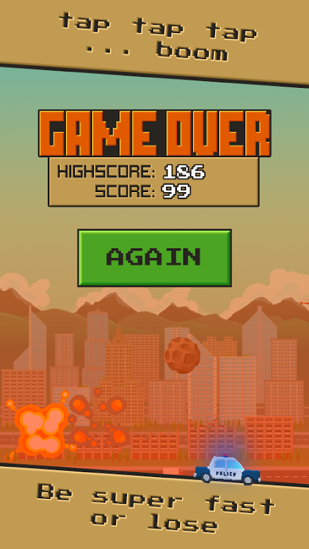 Slumpy Asteroids is a fast paced tapping game which gets every second faster and faster. Protect the city by destroying the slumpy asteroids before they crash into the buildings and be the hero the inhabitants need, otherwise it will be the last day on Earth for this city. Survive as long as you can and destroy as many Slumpy Asteroids as you can by clicking on them. Collect powerful power ups in the game and get the best highscore.