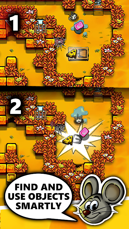 Help de slimme muis door doolhoven te navigeren, puzzels op te lossen en kaas te verzamelen!