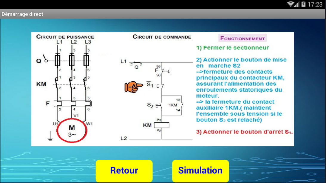 De applicatie bevat twee lessen; Gebalanceerd driefasensysteem, driefasige asynchrone motoren.