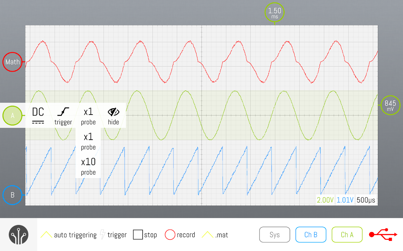 In combinatie met de LabNation SmartScope, deze app maakt van uw tablet in een mobiele oscilloscoop / waveform generator.