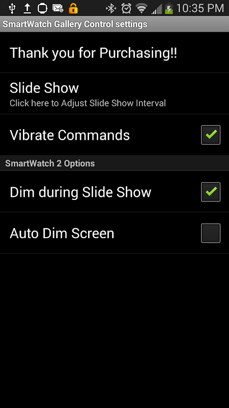* Low power mode now supported. Open up your settings and choose to have the screen dim just during the slideshow or every time the watch face is not touched for a few seconds.