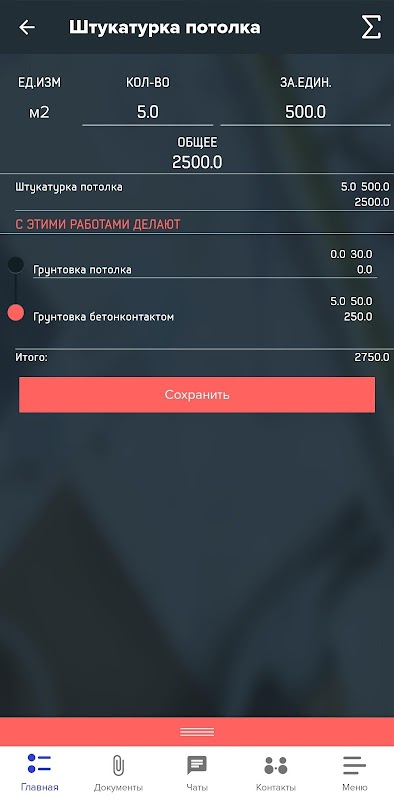 Aanvraag voor het berekenen van werkschattingen en het berekenen van materialen. Rekenmachine bouwen
