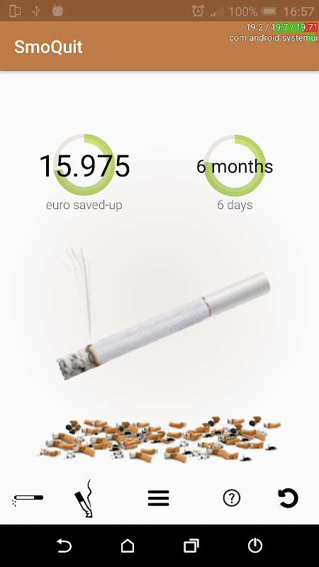 - Verlies de sigarettengewoonte niet, want de app geeft je de mogelijkheid om de as eraf te vegen (er zijn ook trucs beschikbaar)