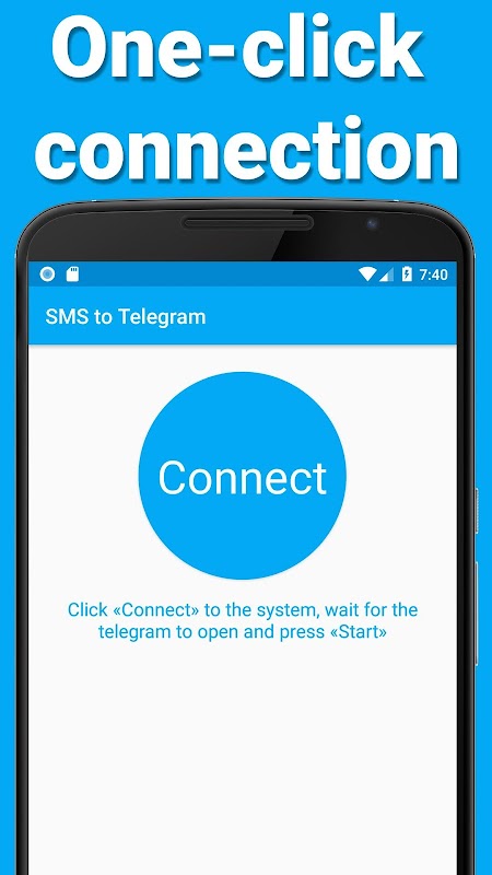 - Messages won't get lost: if your phone does not have an active internet-connection, messages will be sent to your Telegram once the phone is connected to the network!