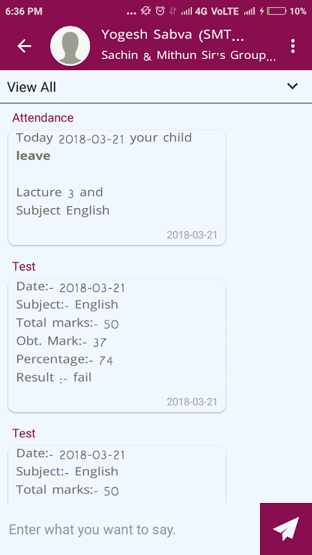 Get lecture details, notices, news, attendance, test details, fees and activity messages directly from Rosary Education System in your own languages. You can view messages with photos for better understanding an reply for more details.
