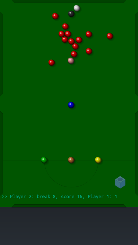 Snooker is a cue sport that is typically played on a table covered with a green cloth or baize, with pockets situated in each of the four corners and a further two, commonly referred to as the middle, or side pockets, that sit in the middle of each of the long side cushions. The (baize) cloth on a snooker table has a directional nap running from the baulk end of the table towards the end with the (black ball) spot. This affects how a ball rolls depending on which direction it is hit or shot. A regular (full-size) table is 12 x 6 ft (3.7 x 1.8 m). It is played using a cue and 22 snooker balls: one white cue ball, 15 red balls worth one point each, and six balls of different colours: yellow (2 points), green (3), brown (4), blue (5), pink (6) and black (7). A player (or team) wins a frame (individual game) of snooker by scoring more points than the opponent(s), using the cue ball to pot the red and coloured balls. A player receives additional points if the opponent commits a foul. If the scores are equal when all the balls have been potted, the black is placed back on its spot as a tiebreaker. A player wins a match when a predetermined number of frames have been won.