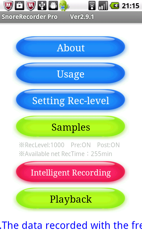 Deze App is de betalende versie van SnoreRecorder gratis. Vóór de aankoop van de Pro-versie, test de werking met behulp van de gratis versie.