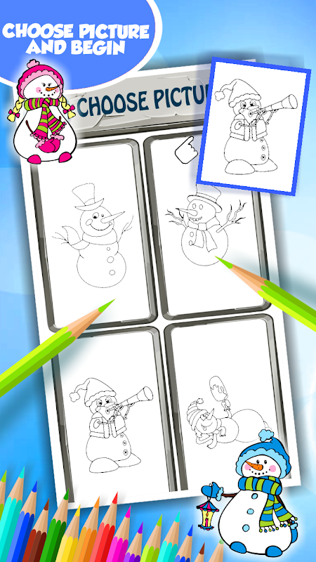 Maak je geen zorgen, want je hoeft nu alleen maar te werken op coole illustraties die je op de fotopagina kunt vinden, maar je kunt ook je eigen afbeelding maken. Maak je creativiteit los en gebruik een potlood om het meesterwerk van kunst te creëren. Wat belangrijk is, is dat u de grootte ervan kunt aanpassen volgens uw behoeften. Maak je geen zorgen als je een fout maakt, maar gebruik de gum om het te corrigeren. Als u nog steeds een van de prachtige tekeningen kiest, is er de mogelijkheid om het in of uit te zoomen, zodat u de kleinste details van hen kunt opmerken. Met de nieuwste sneeuwpop kleurplaten kunt u simpelweg simbolen als dat uw favoriete activiteit is. Het is ook educatief spel voor peuters en kinderen, omdat ze leren hoe ze verschillende kleuren herkennen. We moeten vermelden dat u alle kunstwerken in de galerij kunt opslaan, waar u het kunt bladeren wanneer u dat wenst. U kunt ook een foto instellen die u als achtergrond op uw tablet hebt voltooid en het zal prachtig verfraaien. Download gratis het populaire Snowman Coloring Book en geniet van de betoverende illustraties.
