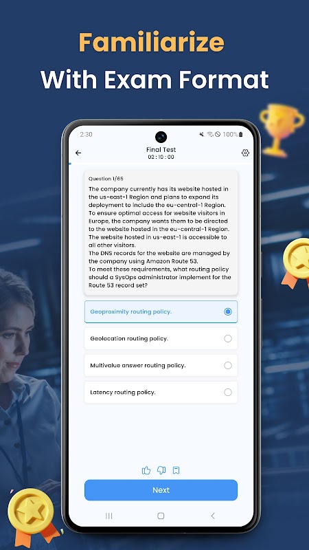 📝 Realistische testsimulaties: ervaar de AWS SysOps-testomgeving uit de eerste hand en maak kennis met het feitelijke examenformaat, de timing en de moeilijkheidsgraad.