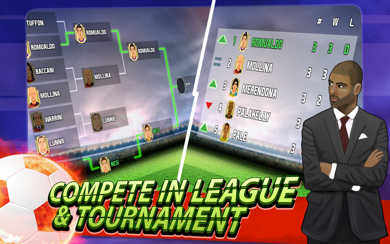 Echte gevechten in dit vechtspel waarin voetballers een gevecht aangaan tussen de beste spelers ter wereld van internationale teams en voetbalcompetities die het meest bekend zijn in de wereld.