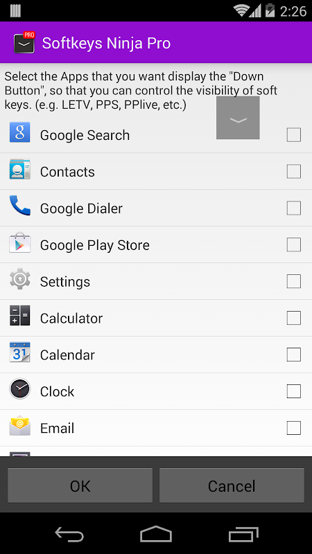 ★ Display "Down Button" only for selected apps (floating on top of your screen)