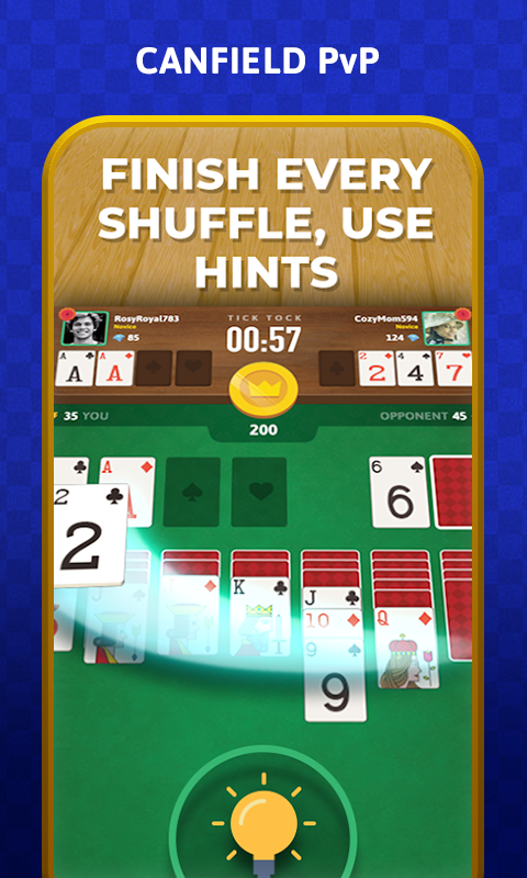 Race tegen de tijd om het dek zo snel mogelijk af te maken. Oefen offline om je vaardigheden te verbeteren en beter en sneller te worden dan iedereen. Personaliseer je Solitaire-spel door je favoriete thema te kiezen voor de achtergrond en kaarten van je keuze.