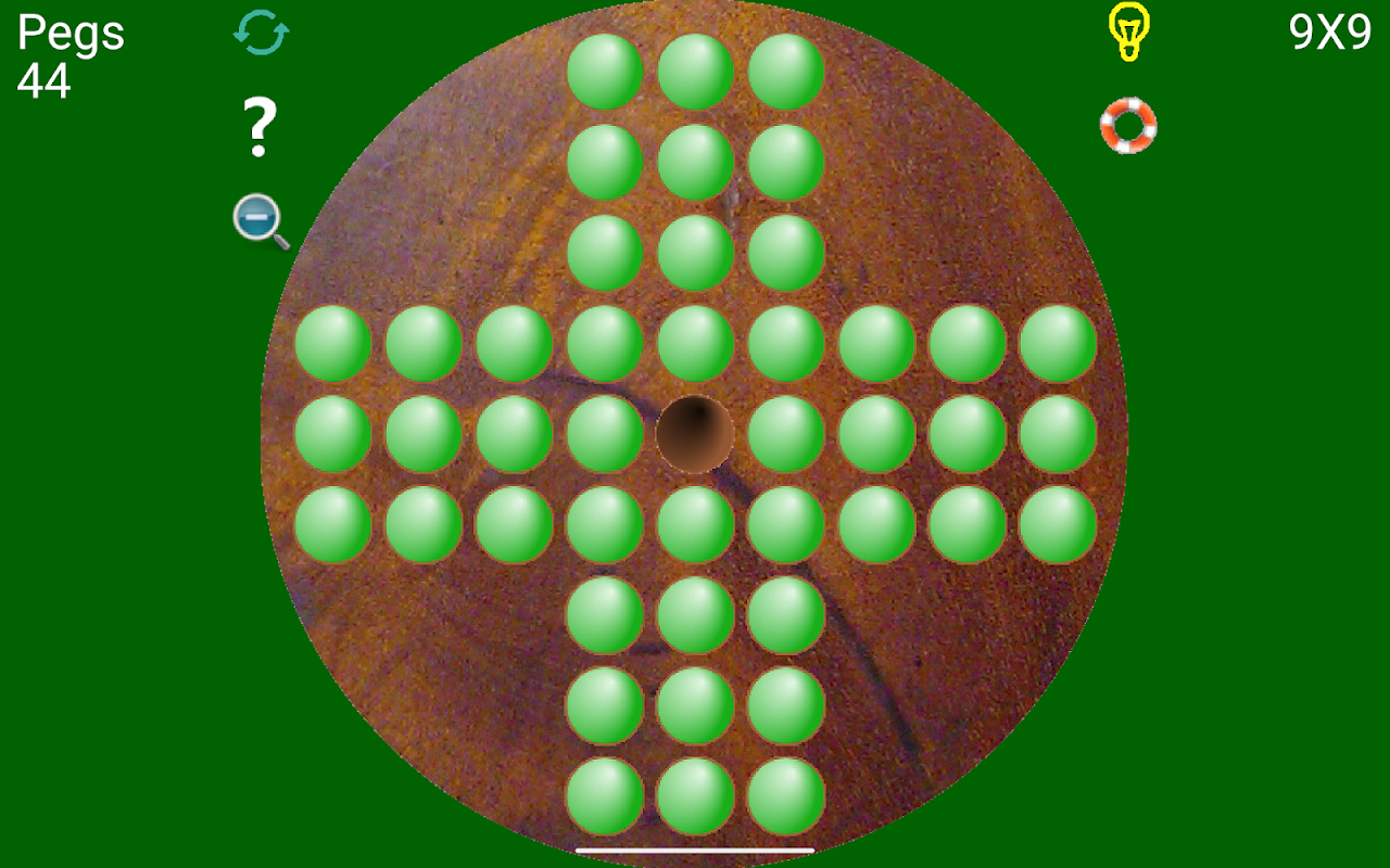 Selecteer een pin door deze aan te raken. Het wordt dan vergroot weergegeven. Selecteer de bestemmingshole. Als dit een geldige zet is, wordt het paaltje daarheen verplaatst en het tussenliggende paaltje verwijderd.