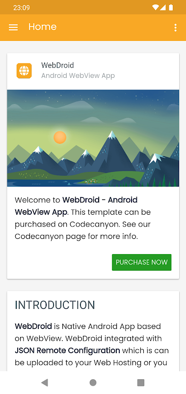 WebDroid is een native Android-app op basis van WebView. WebDroid geïntegreerd met JSON Remote Configuration die kan worden geüpload naar uw webhosting of u kunt ook Google Drive, Firebase Storage, RAW Github, enz. Gebruiken als alternatief om uw JSON-bestand op te slaan, zodat u het lijstitem en de url van de navigatielade kunt beheren dynamisch altijd en overal zonder uw Android-code opnieuw te hoeven bewerken en de APK herhaaldelijk te hoeven maken. Draai onder het Android-platform en gebouwd met Android Studio met Java-programmeertaal, zodat de app native, snel en soepel werkt. Implementeer de gebruikersinterface van Google Material Design om de app mooi te maken in ontwerp en gebruikerservaringen.