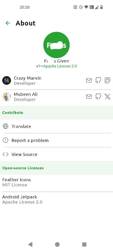 Feel welcome to report issues and submit fixes on https://github.com/Crazy-Marvin/FucksGiven/ or translations on https://hosted.weblate.org/engage/fucks-given/. 🚀
