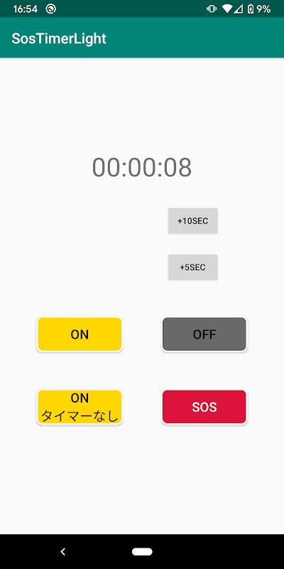 カウントダウンする秒数はデフォルトで10秒。ボタンをタップすれば5秒または10秒単位でOFFになるまでの時間を増やせます。