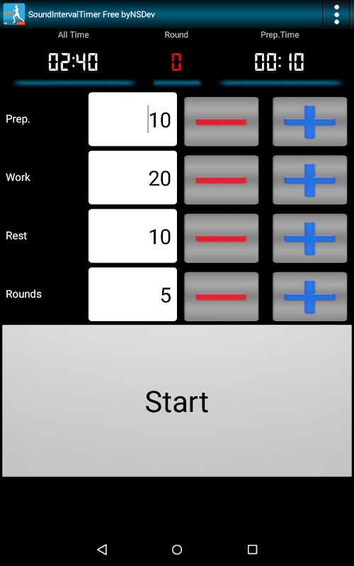 Voorbereiding, oefening, elk aantal seconden te breken (tot 9999 seconden), kunt u het aantal keren (maximaal 99) in te stellen.