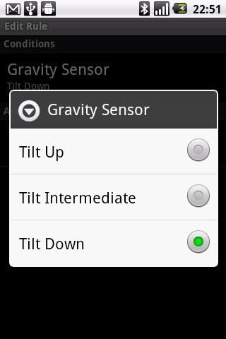 Allows to define a rule condition if phone tilted face up/down.