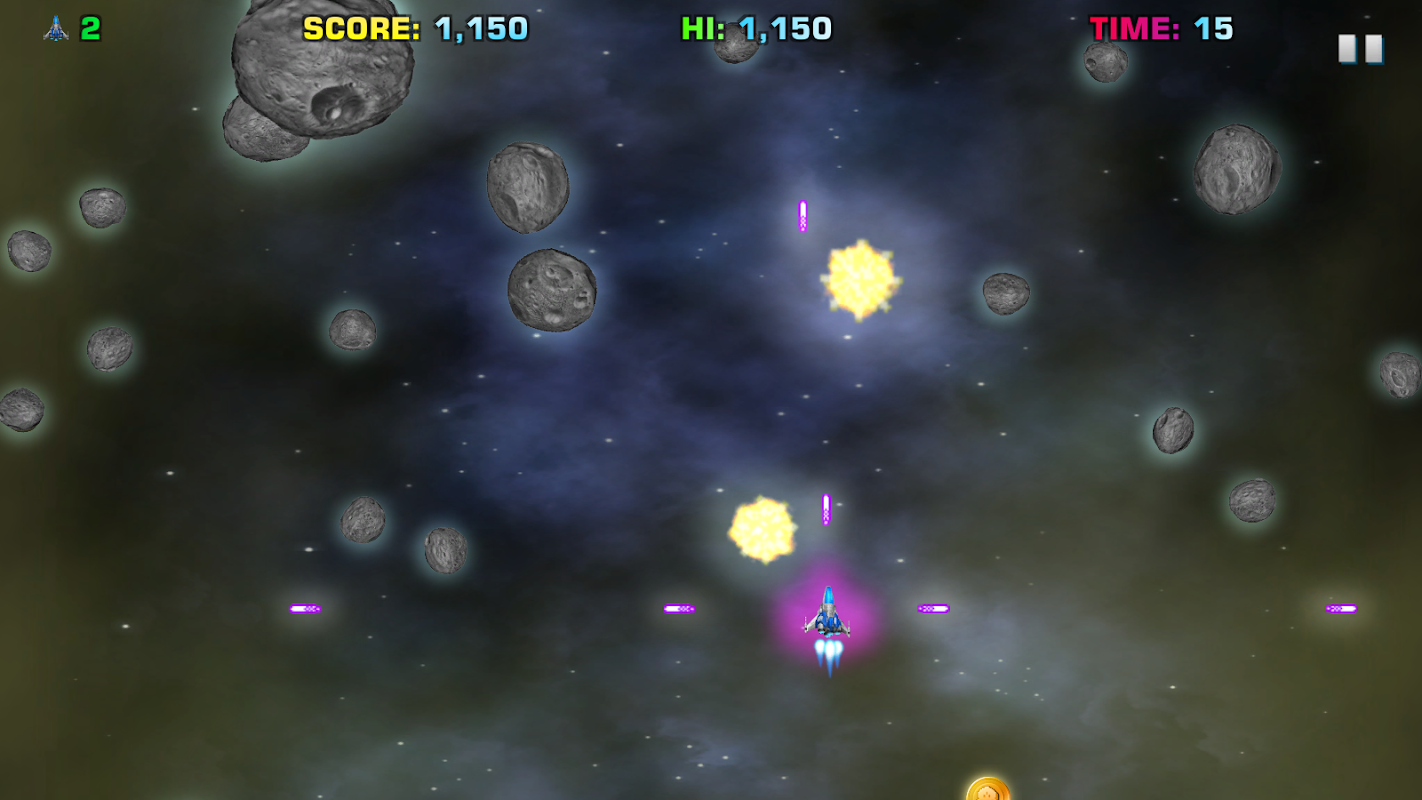 “Meteor Storm” : Fire up the Jet rockets and Blast your path through the Asteroid field onto your next encounter.