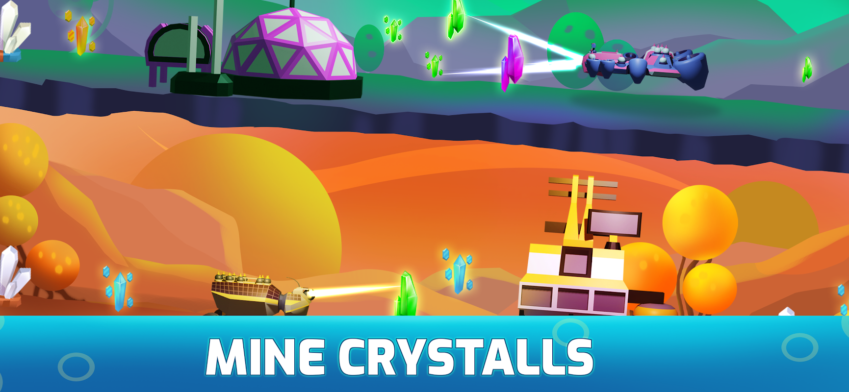 MIJN de ruimtemineralen op Mars. Rijd gewoon naar ze toe om de hulpbron te halen en breng het dan naar je ruimtebasis.