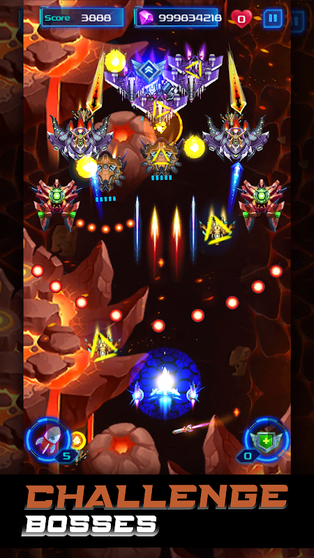 - Galaxy Attack Alien Shooter biedt meerdere modi om uit te kiezen: Arcade Mode, Challenge Mode en Endless Mode.