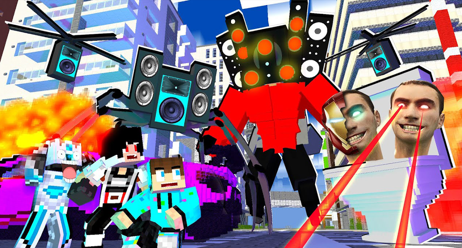 Skibidi vs Speakerman mod Minecraft voor Android wees klaar Amerikaanse presidenten in Ohio en skibidi dop dop dop ja ja vs Speakerman.