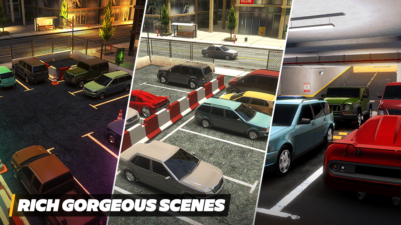 Doe parkeerervaring op op verschillende parkeerterreinen en rijd gemakkelijk in het echte leven! Onze parkeerplaatsen hebben verschillende tijden van de dag en weersomstandigheden.