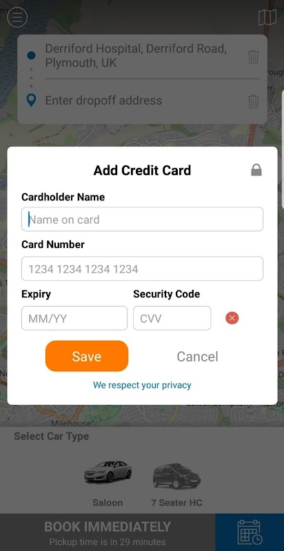 Nooit meer het eens te betalen voor een rit zonder te weten over hoeveel het zal kosten. Gebruik onze tarief citaten functie om uw bestemming in te voeren, en wij sturen u een schatting van hoeveel uw rit zal kosten geven.